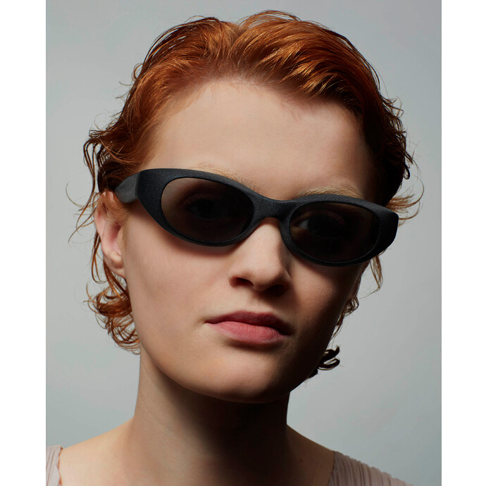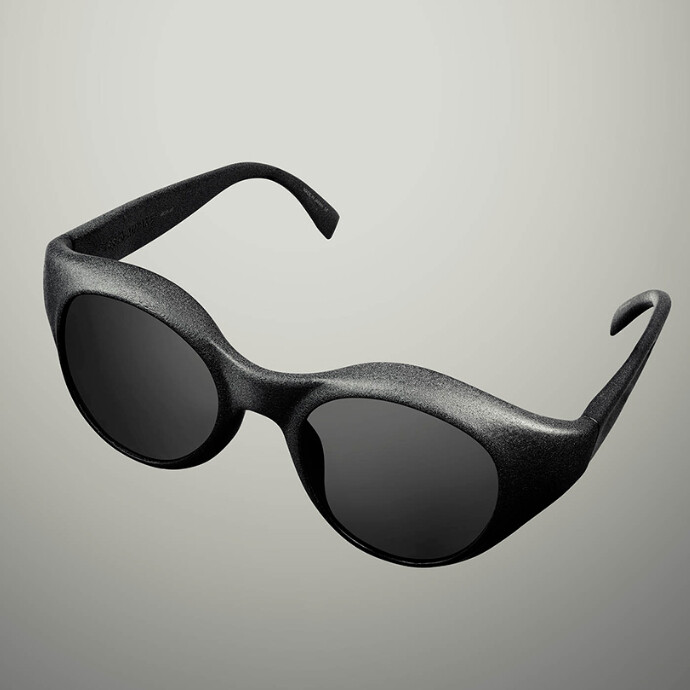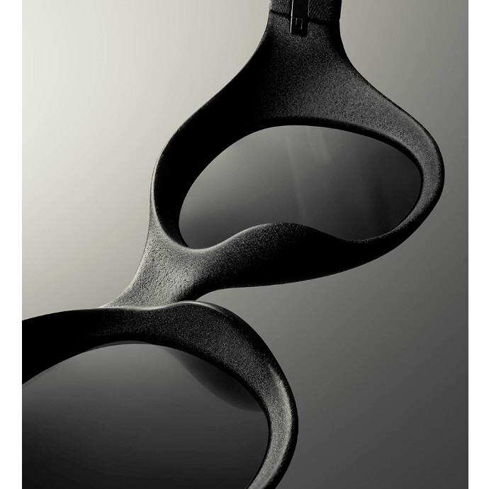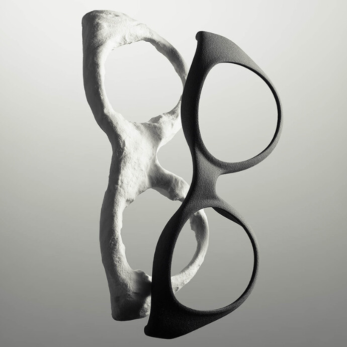 フレームの原料となる粒子は、植物から採取した油から作られ、造形の瞬間に白色から炭のような濃い灰色へと変化します。