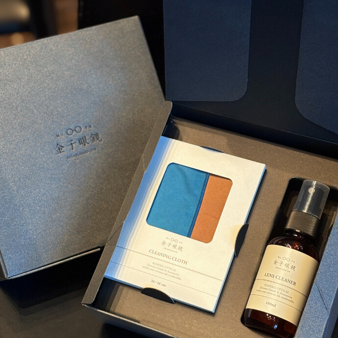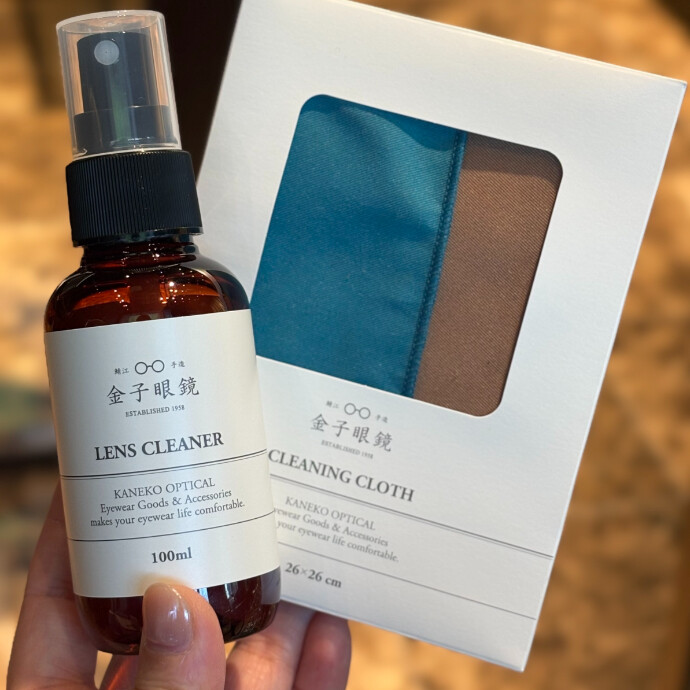 専用のクリーナーと眼鏡拭きのお手入れセット。