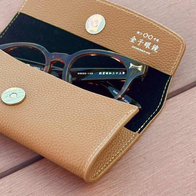 革の表面に独特の表情を持つ「シュリンクレザー」を使用した金子眼鏡店オリジナルケース。ブラックとベージュの2カラー展開です。