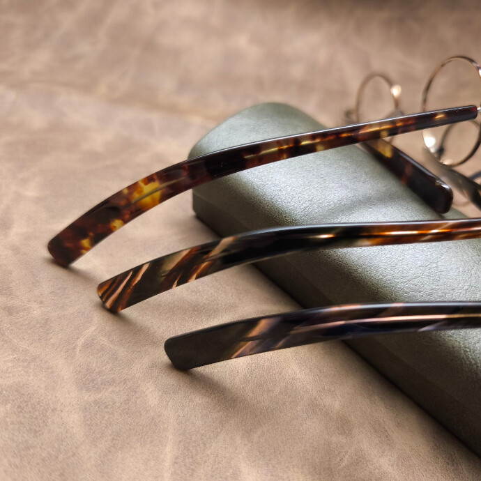 お肌に当たる一山の内側部分にはシリコンを塗っており、セルロイドの太めのテンプル(ツル)により掛け心地の安定感も◎