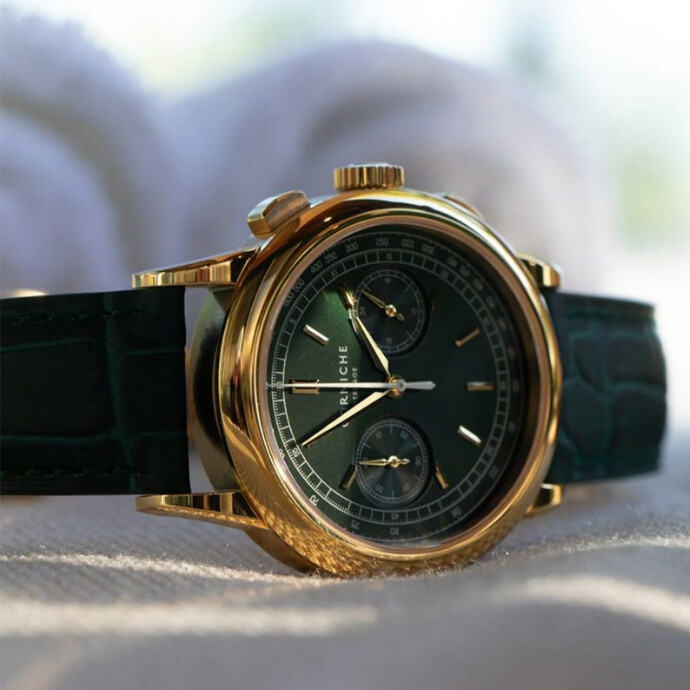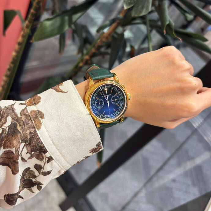 ダイアルのグリーンはかなり落ち着いたトーンで、