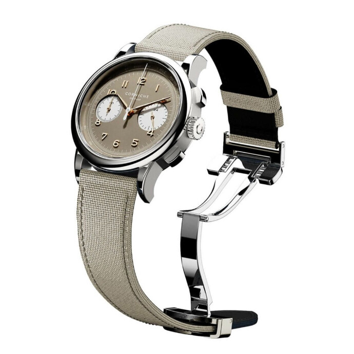 「サンドベージュ×ローズゴールド」の色使いが特徴で、