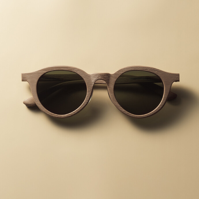 アセテート生地を職人が1本1本手で削り、まるで本物の木材のように仕上げています。