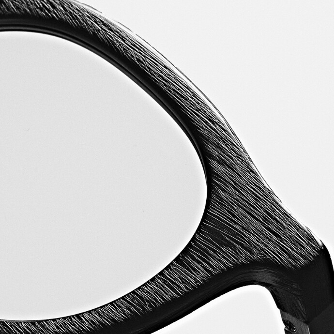 フロントとテンプルを繋ぐヒンジには、オリジナルでブロック状のチタン製パーツを設計し、統一感のあるシームレスな造形です。
