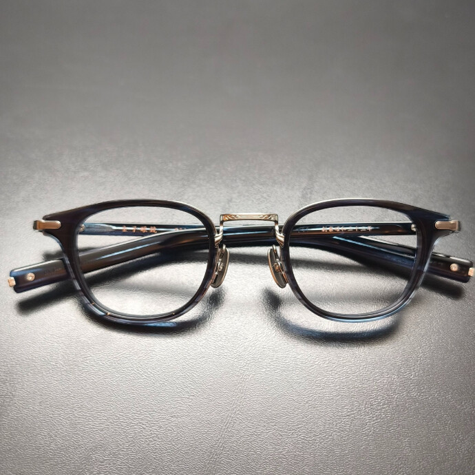 肉厚なチタンリムの内側には精巧に作られたインナーリムがそれぞれのカラーを彩り、ブリッジの彫金からテンプルエンドのシルバー925の飾りまで抜かりがありません。