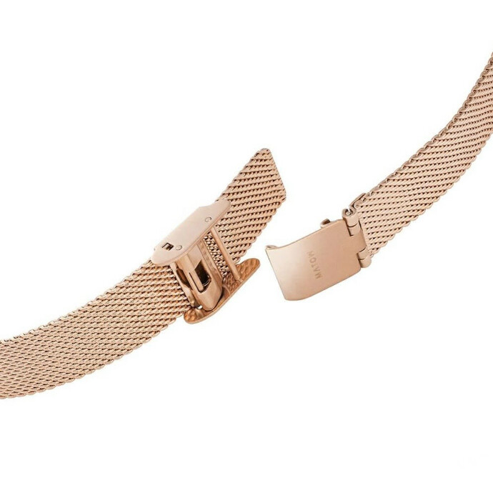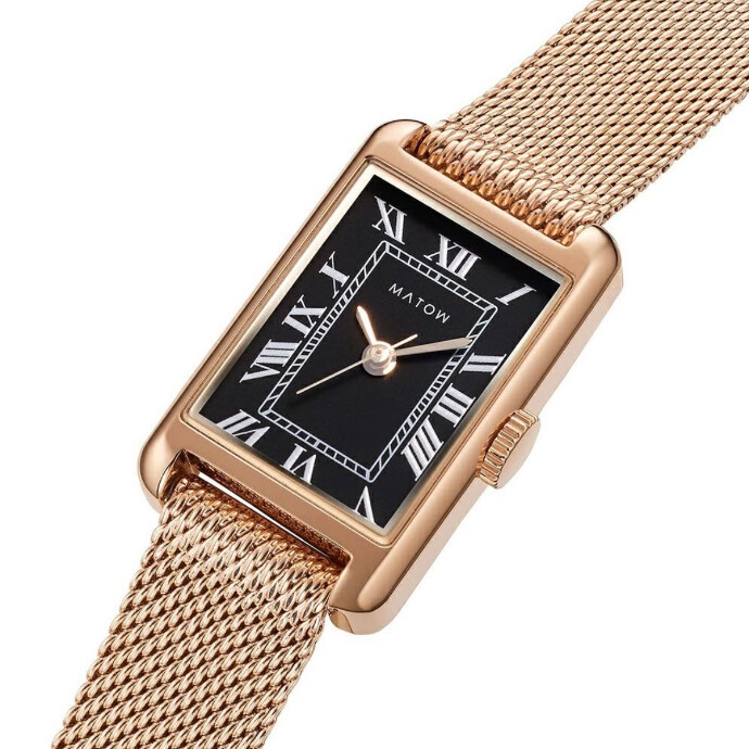 漆黒の文字盤とローズゴールドの組み合わせが、落ち着きと華やかさを両立しています。